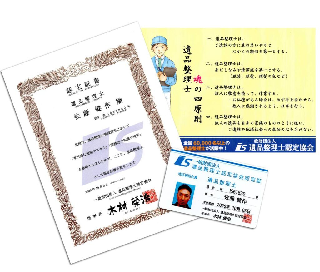 北海商事では、遺品整理士協会認定の資格を持つ「遺品整理士」が在籍。