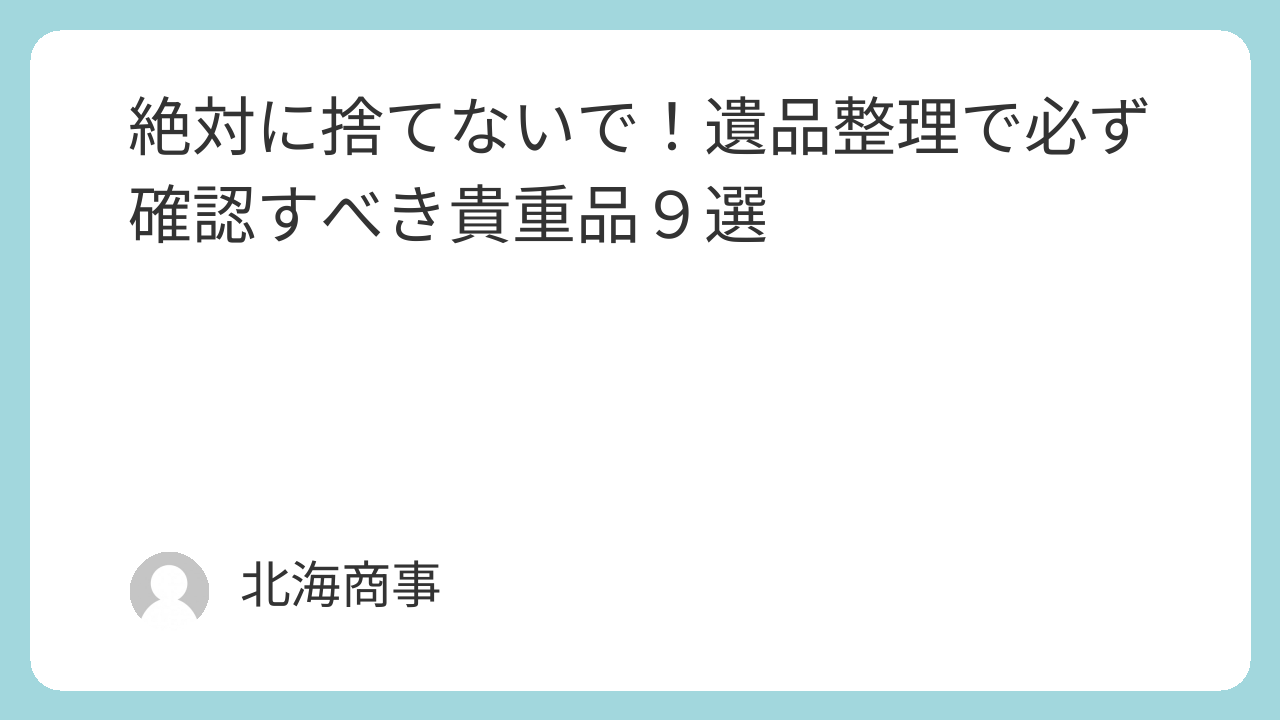 本記事では、遺品整理で絶対に見逃してはならない貴重品を9つご紹介しました。遺品整理における貴重品とは、預金通帳や不動産権利証といった金銭的価値のあるものだけを指すわけではありません。印鑑や年金手帳など各種手続きに不可欠なもの、そして故人との絆を感じられる写真や手紙といった思い出の品も、ご遺族にとってはかけがえのない財産です。これらを誤って処分してしまうと、相続手続きが滞るだけでなく、二度と取り戻せない大切な記憶を失うことにも繋がります。