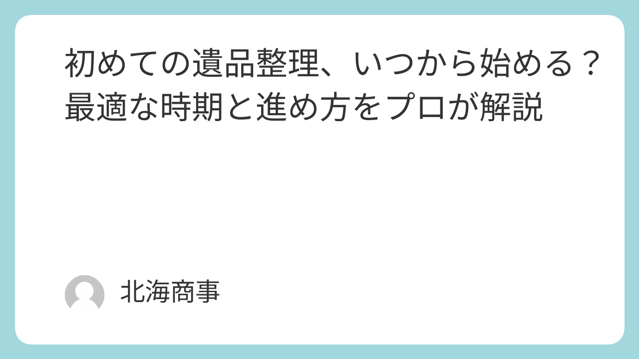 父が亡くなり、悲しみの癒えぬまま遺品整理に追われています。何から手をつけていいか分からず、気持ちばかりが焦ってしまい本当に辛いです。一般的な開始時期や、後悔しない進め方があれば教えてください。