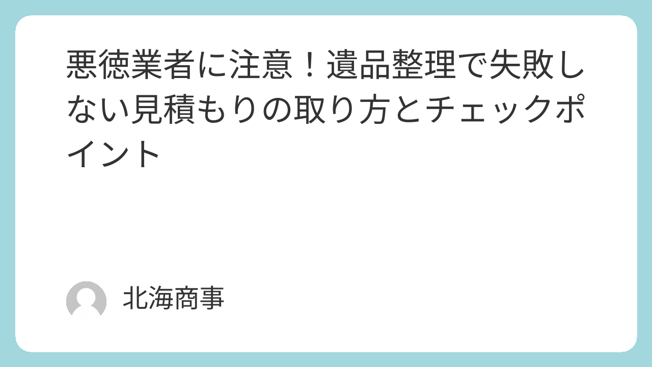 おっしゃる通り、相見積もりは悪徳業者を避ける最も効果的な方法です。複数の業者を比較することで料金相場が分かり、サービスやスタッフの対応品質も見えてきます。故人の大切な遺品を安心して任せられる業者を見つけるために不可欠なプロセスです。