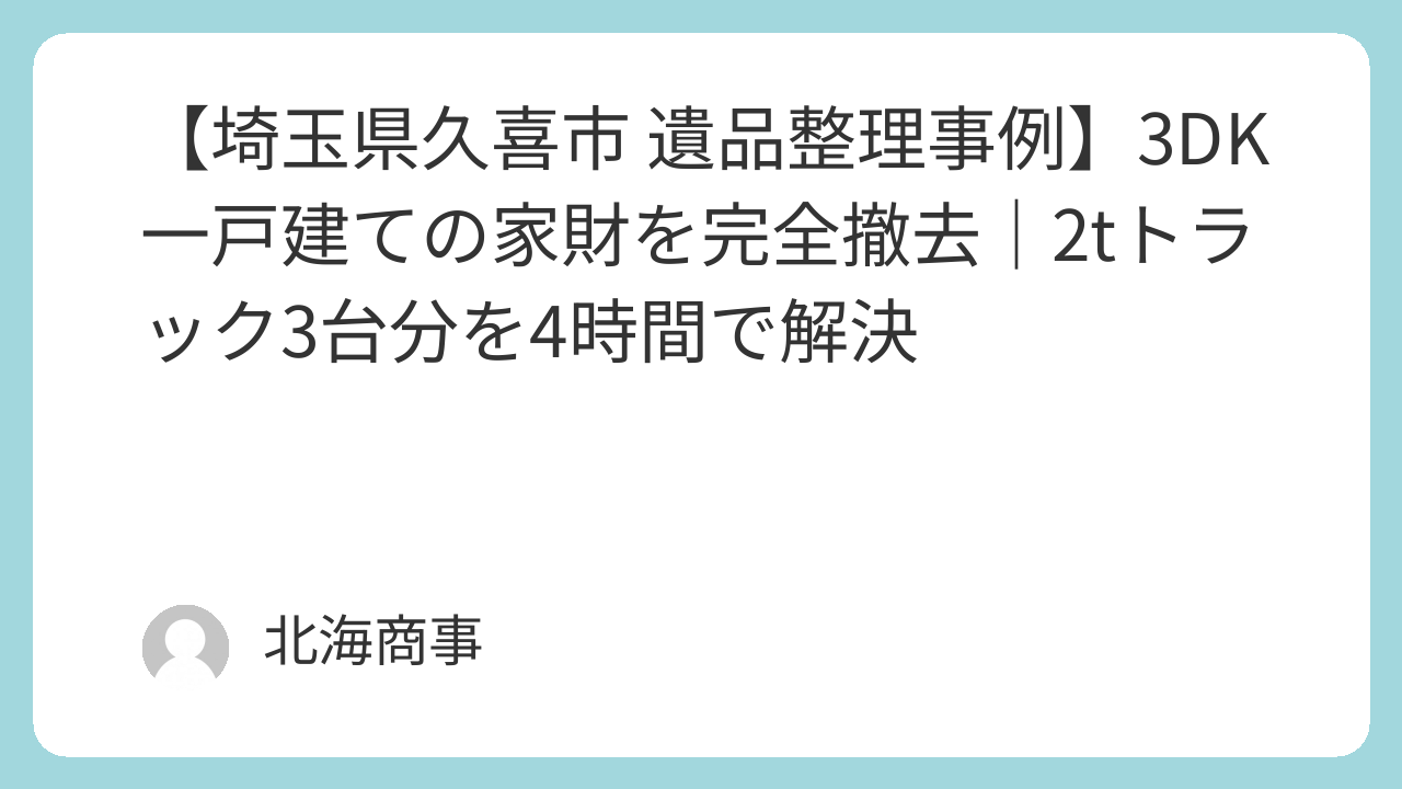 今回ご紹介するのは、埼玉県久喜市の一戸建て(3DK)にお住まいだった故人様のご親族からいただいた、まさにそのような状況下での遺品整理のご依頼です。