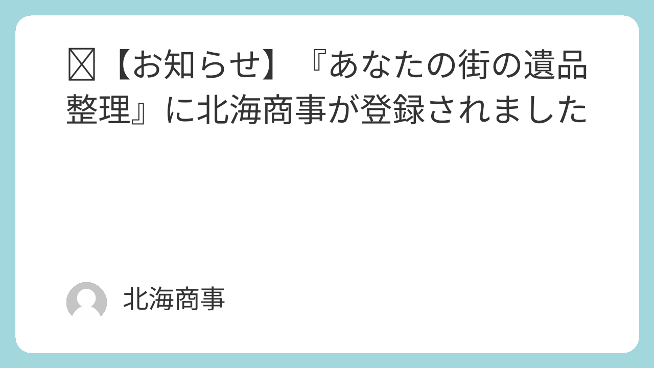 ​【お知らせ】『あなたの街の遺品整理』に北海商事が登録されました