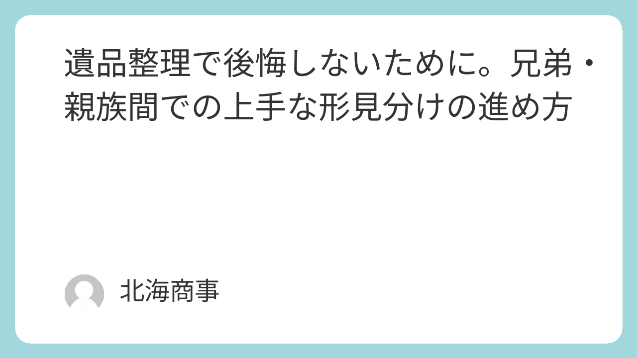 よくある失敗事例から後悔しないための重要ルール、円満な形見分けの具体的な段取りまでを解説。兄弟みんなが納得できる遺品整理の進め方がわかります。