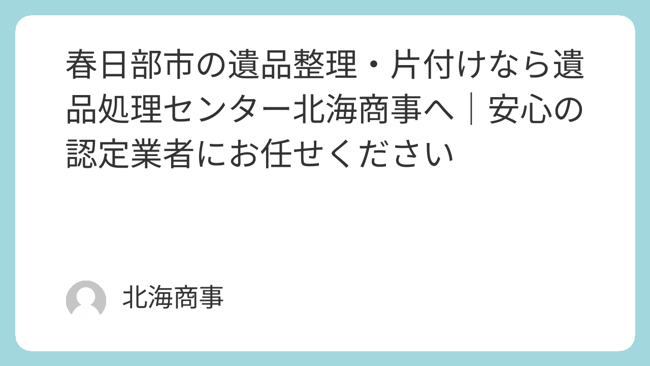 私たち「遺品処理センター北海商事」は、春日部市をはじめとする埼玉県・関東エリアで、数多くの遺品整理をお手伝いしてきた専門業者です。