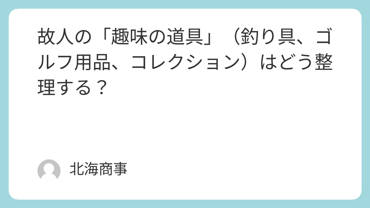 釣り具やゴルフ用品、長年かけて集めたコレクションなど、一つひとつに故人の想いが宿っています。そのため、遺品整理の中でも特に慎重な取り扱いが求められます。