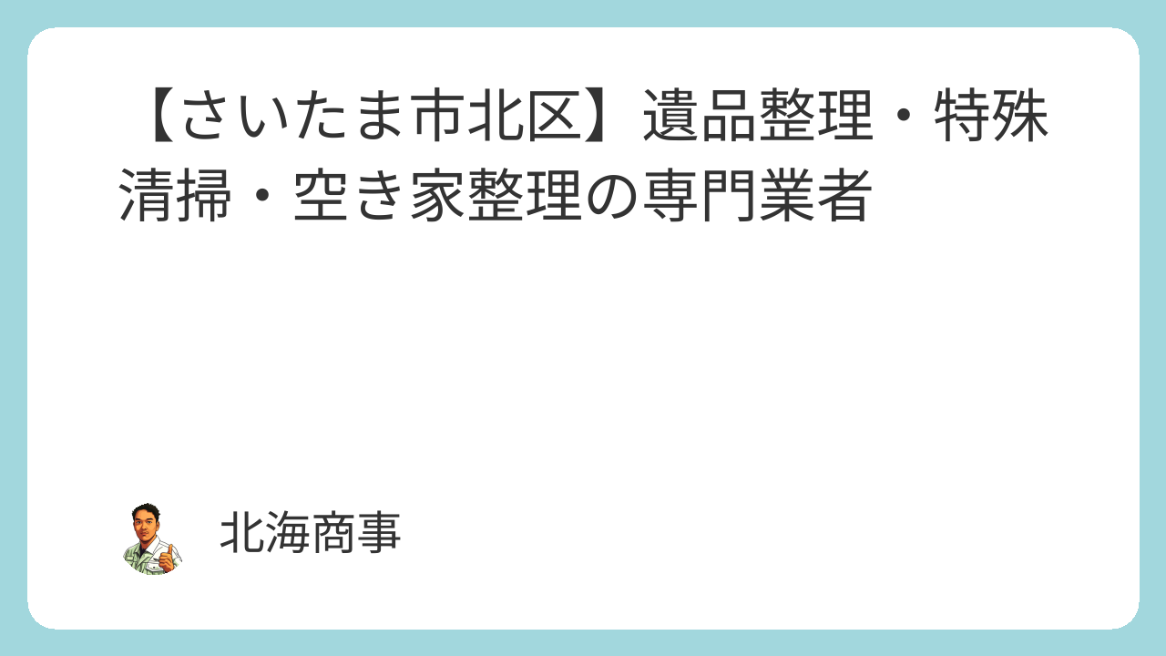 「ご実家が空き家になってしまった」、「遠方で遺品整理が進まない」など、さいたま市北区で増えているお悩みに、私たち北海商事が寄り添います。