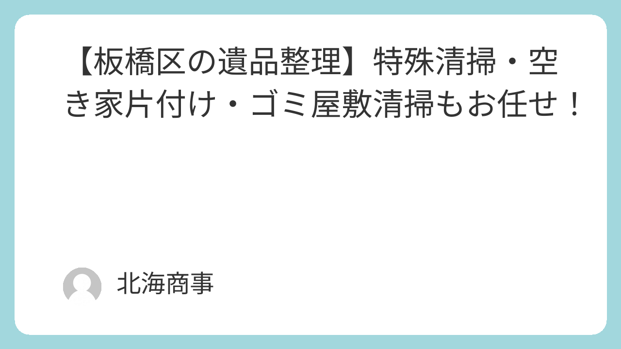 北海商事は、板橋区における遺品整理、生前整理、特殊清掃、空き家やゴミ屋敷整理の専門業者です。