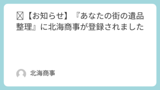 【お知らせ】『あなたの街の遺品整理』に北海商事が登録されました
