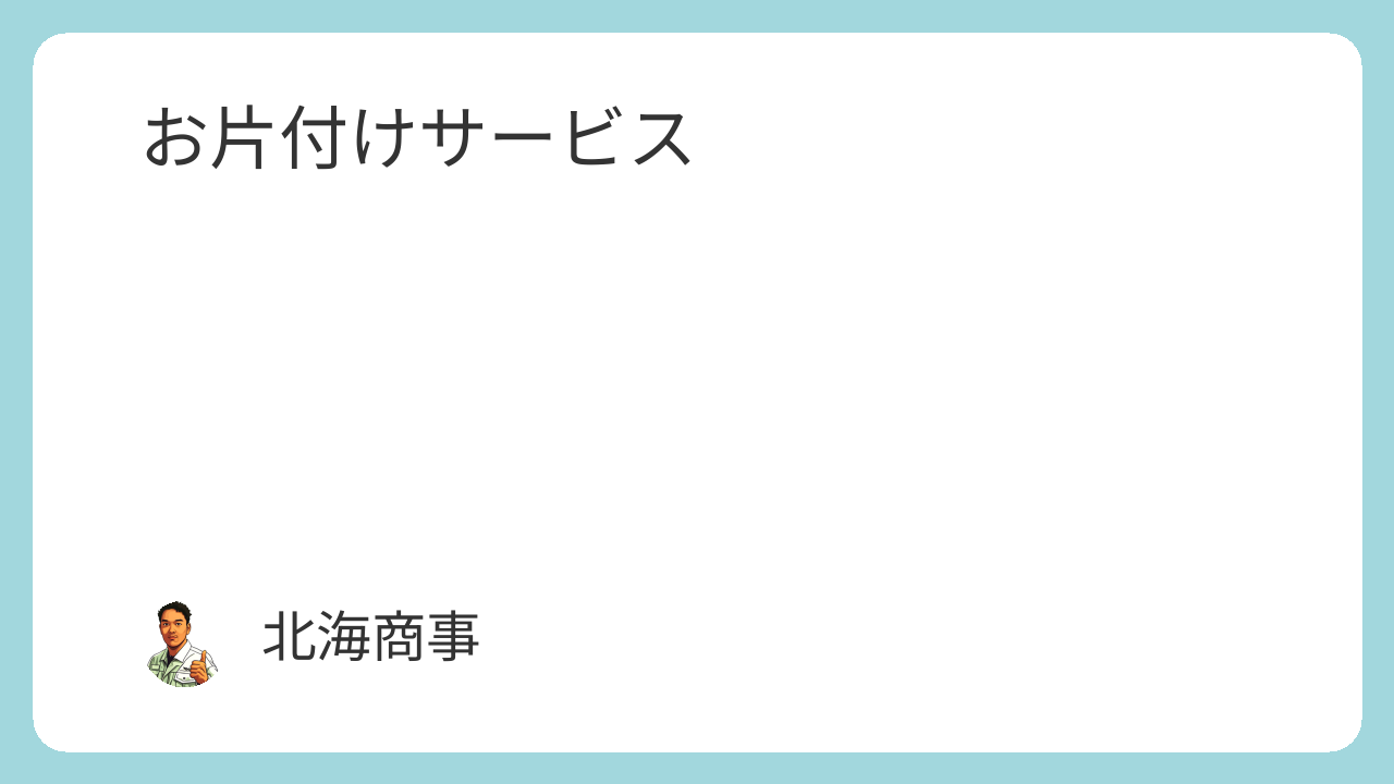 故人様の想いを整理する「遺品整理」、ご自身のこれからに備える「生前整理」、孤独死やゴミ屋敷などの緊急事態に対応する「特殊清掃」、そして長年放置されたご実家を片付ける「空き家整理」。私たち北海商事は、お客様が抱える様々なお悩みに寄り添う、お片付けの総合専門家です。